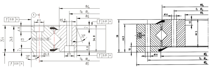 XSU系列交叉滾子軸承(內、外圈整體型、高剛性、帶安裝孔)